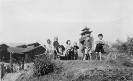 細い坂道の両側に桜が植えられているのがお分かりだろうか(注)。まだ桜のトンネルなどと呼ばれていなかったころは、ローラースケートや子どもたちが「ひこうき」と呼んだ遊具(建具の戸車を車輪にした手づくりの乗り物)で滑走するのどかな坂道だったが、今では灘区有数の桜の名所に。